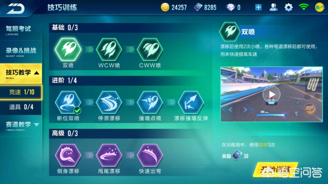 不过其中要用到的技巧只有几个,断位漂移,双喷,甩尾,快速出弯和撞墙点喷,其他的可以忽略!