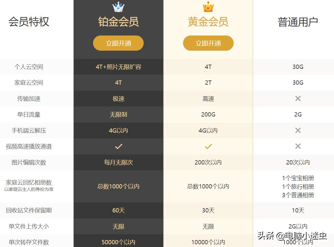 天翼云盘普通用户只有30G空间,不过官方的活动很多,很容易就可以升级到1T或者2T,小迷的就有6T,是免费的,而且通过电信手机卡的积分还兑换了黄金会员呢,完全可以满足日常备份资料所用。