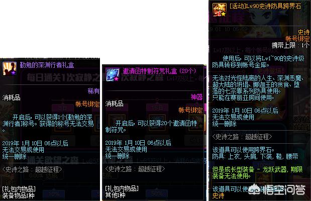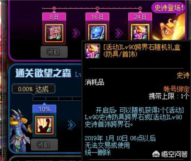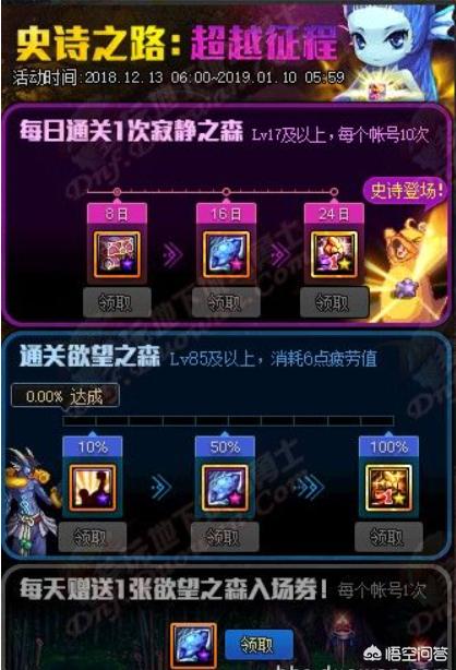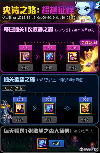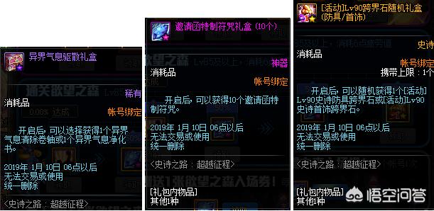 就在昨天体验服也公布了史诗之路的奖励信息,通关欲望之森8天可以获得异界气息驱散礼盒(净化书/清除卷),通过16天可以获得10张邀请函特质符咒礼盒10个(1个可以抵制30张深渊票,24天可以随机获得一个90防具./首饰的跨界石!