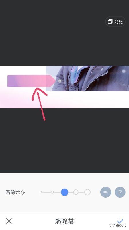 3、打开需要去除文字的图片之后,在上面的工具栏中,点击“消除笔”工具;然后在左侧消除笔设置中,根据图片和文字的情况,调整画笔的大小;调整完画笔的大小之后,这时候鼠标就是一个画笔了,用鼠标在需要去掉的文字上面进行移动涂抹操作,然后放开鼠标,就可以看到文字已经成功去掉了