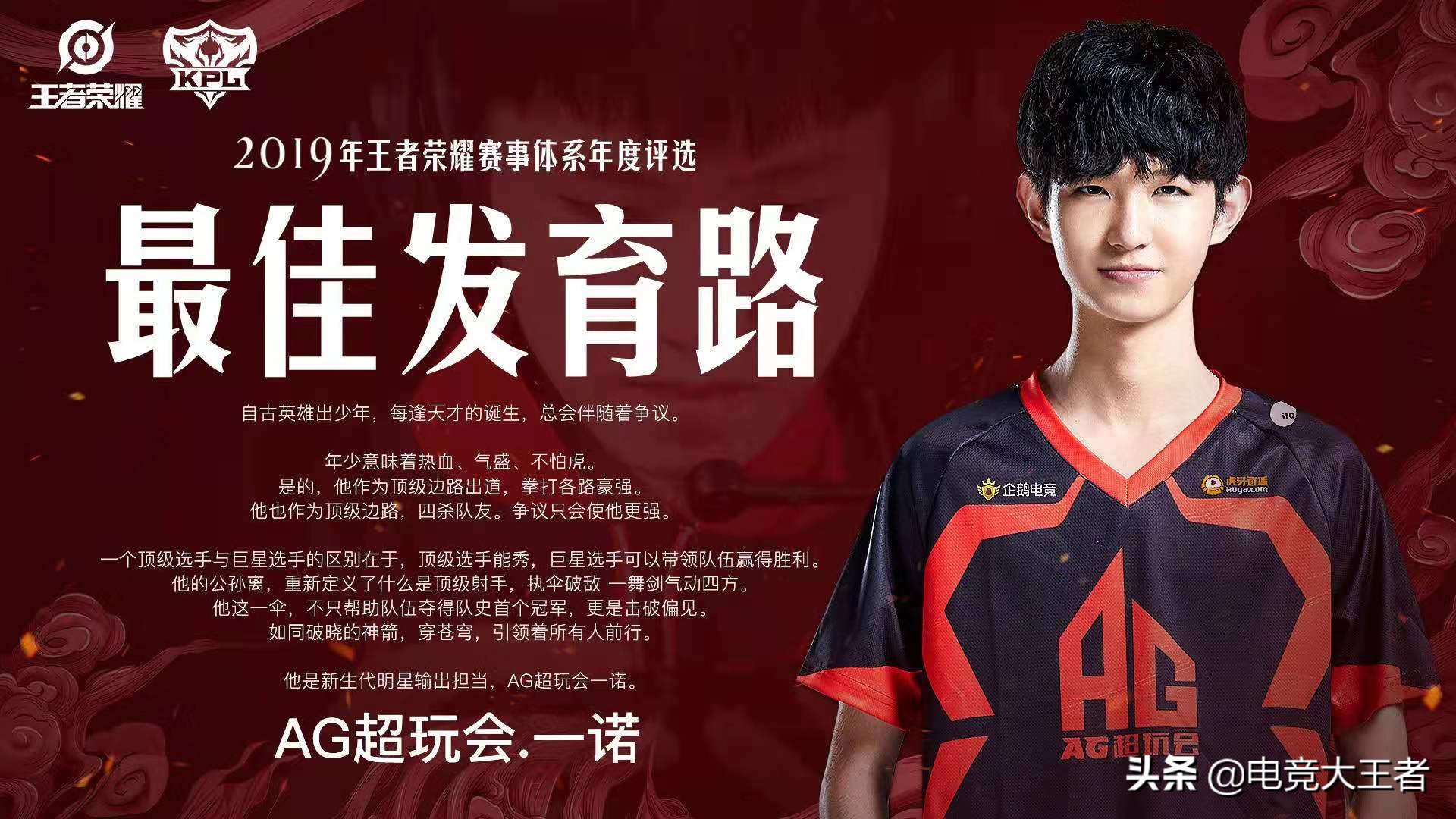 提到AG超玩会的一诺,大家最先想到的是什么?或许之前大家会想到那个“四连击破”队友的关羽,助攻YTG路西法吕布而“成名”,但是如今,恐怕这些都在大家的印象中变得淡薄了很多,因为一诺有了更新颖、更让大家印象深刻的“标签”,他被粉丝盛赞为KPL电竞圈的“天才”选手,天赋极高,也获得了KPL联盟的认可,从数位优秀选手中脱颖而出,斩获了2019年度KPL发育路最佳选手,他就是AG超玩会一诺!
