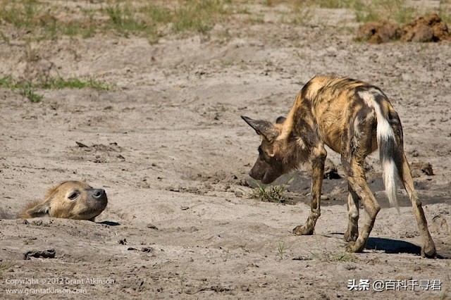 从一些图片来看,斑鬣狗面对非洲野犬时处于下风,一是因为非洲野犬数量占优势,一般来说,2只以上的野犬才有能力对抗一只斑鬣狗。二是野犬比斑鬣狗灵活很多,斑鬣狗身体强壮,但是灵活性差了些,而且野犬喜欢咬屁股,这让斑鬣狗难以招架。三只非洲野犬斗性强,斑鬣狗有时候很怂,而且没有猎物可抢的时候斑鬣狗也不想争夺。