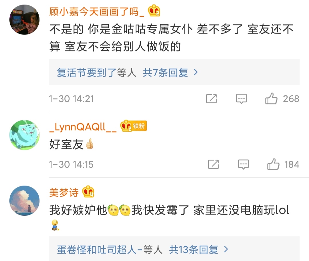 因为s10已经获得了两连败,所以最近一段时间内doinb都在加强训练,而他的老婆糖小幽也是出来发了牢骚,他表示自己给它一日四餐全部手作,并且还有各种水果营养搭配,独享着百兆的光纤,而doinb也是不辜负她的期望,一天12个小时都在高强度的游戏,现在的他们已经算不上是兄弟了,都成为室友了!很多的玩家也纷纷调侃你,现在已经是doinb的专属女仆了,而糖小幽也是回复,接下来就是等着快递再度开启的时候,买一个上下铺了!