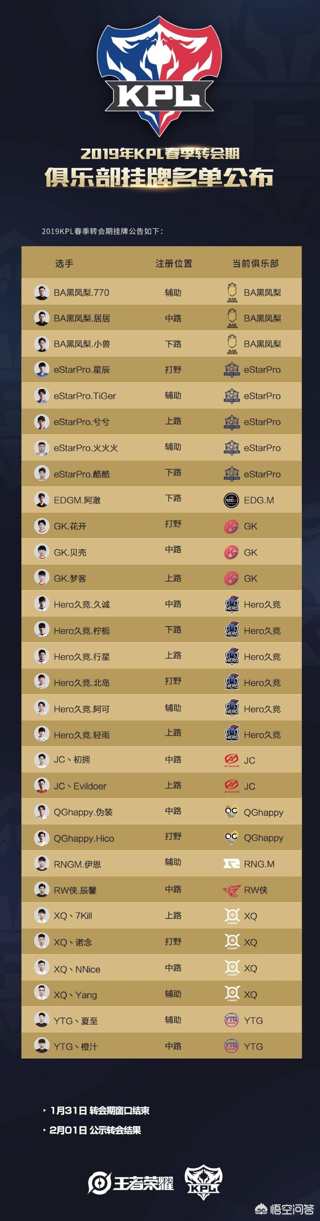 2019kpl春季赛转会期挂牌阶段结束,11家俱乐部30位选手参与,你更看好哪些选手呢