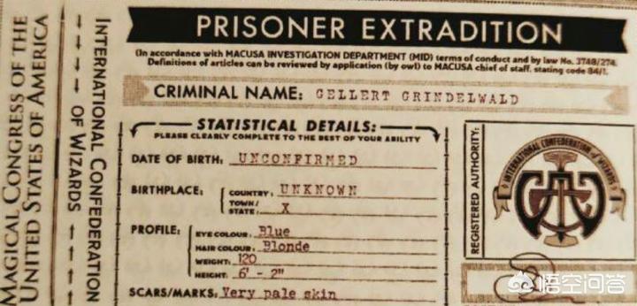 格林德沃的国籍现在唯一能确定的就是他有英国人的血统,因为他的姑祖母(姨祖母的可能性更大,因为格林德沃与巴沙特不同姓)巴希达·巴沙特是英国人,所以他会英语非常正常。在《神奇动物:格林德沃之罪》的官方设定书中我们可以在格林德沃的引渡证件上得知部分信息: