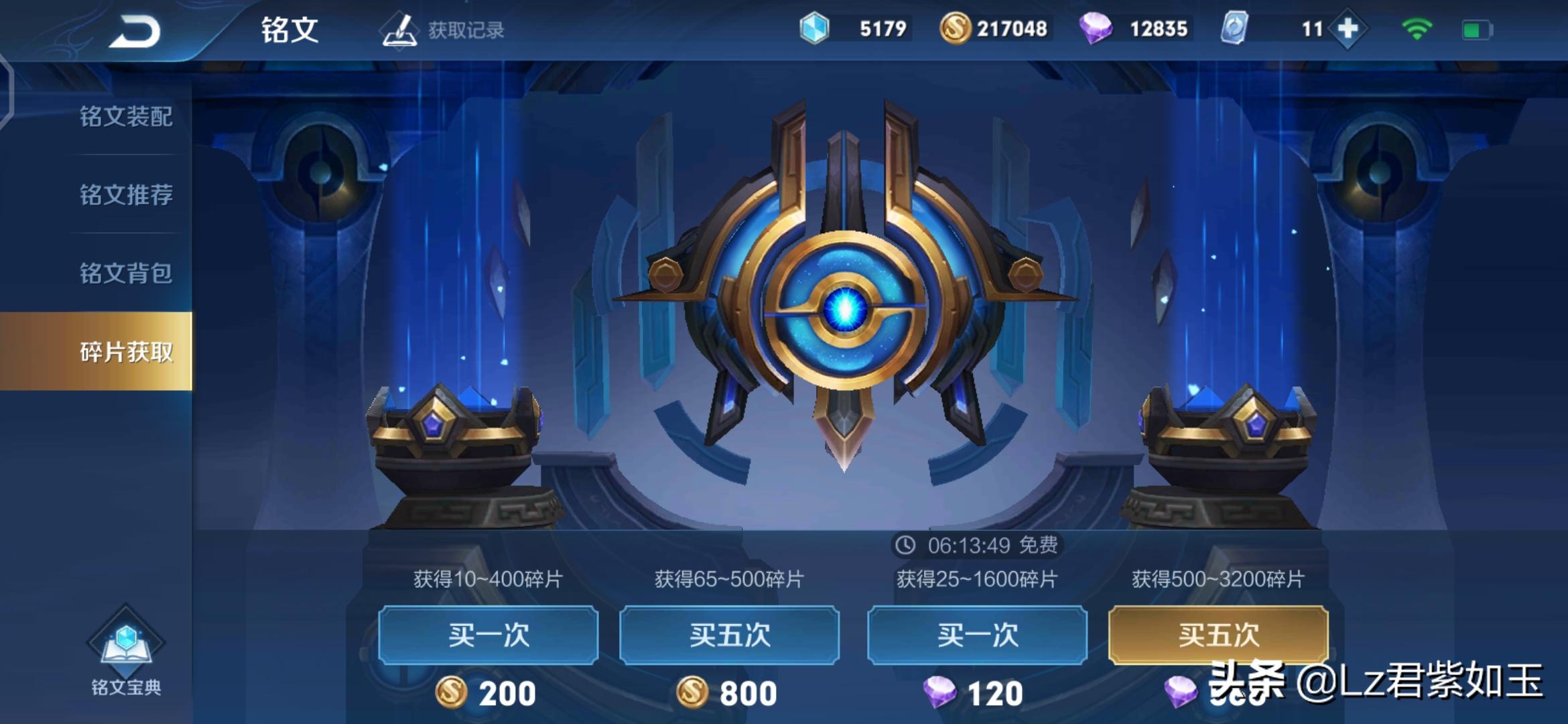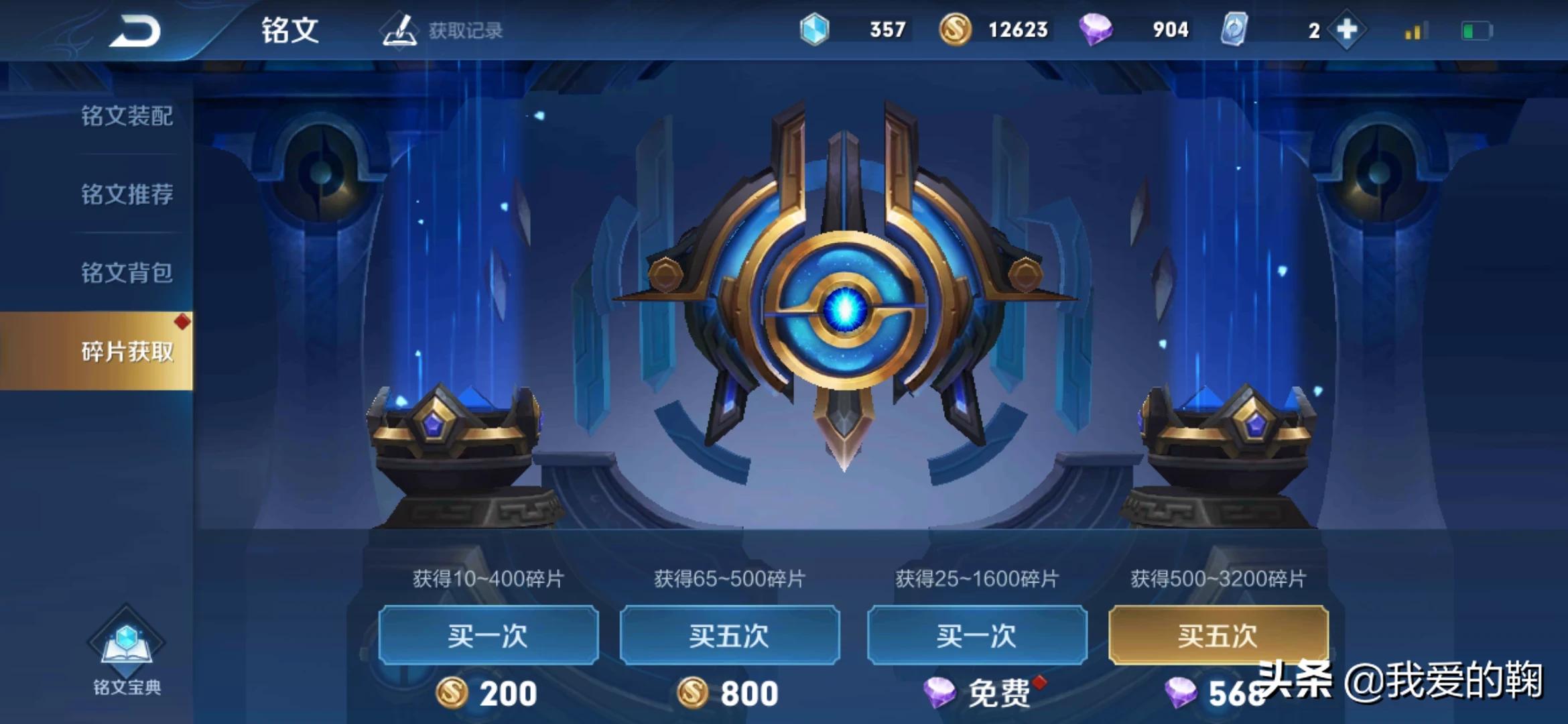 5、可以用金币和钻石购买铭文碎片,8个金币可以购买一个铭文碎片,1个钻石也可以购买一个铭文碎片。