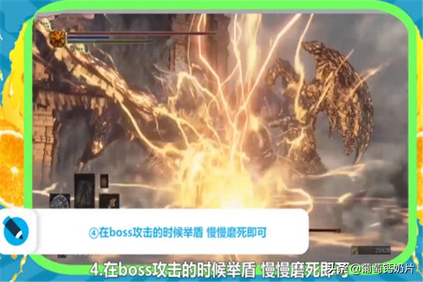 4、在boss攻击的时候举盾,慢慢磨死即可。