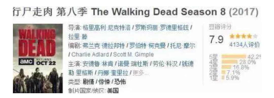 第一次接触《行尸走肉》在高一,然后就深陷其中了,我们都知道《行尸》系列豆瓣分一直高低不下,各方都高度好评,然而最近第8季破了一个“新低”,在整个系列中豆瓣评分首次跌下8分。