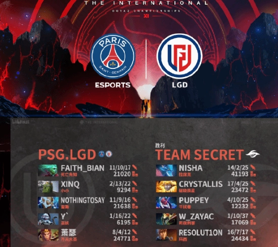 10月20日,Ti11淘汰赛正式开打,来自中国战队PSG.LGD最终状态不佳,以0-2的战绩最终不敌欧洲战队Secret掉入败者组。