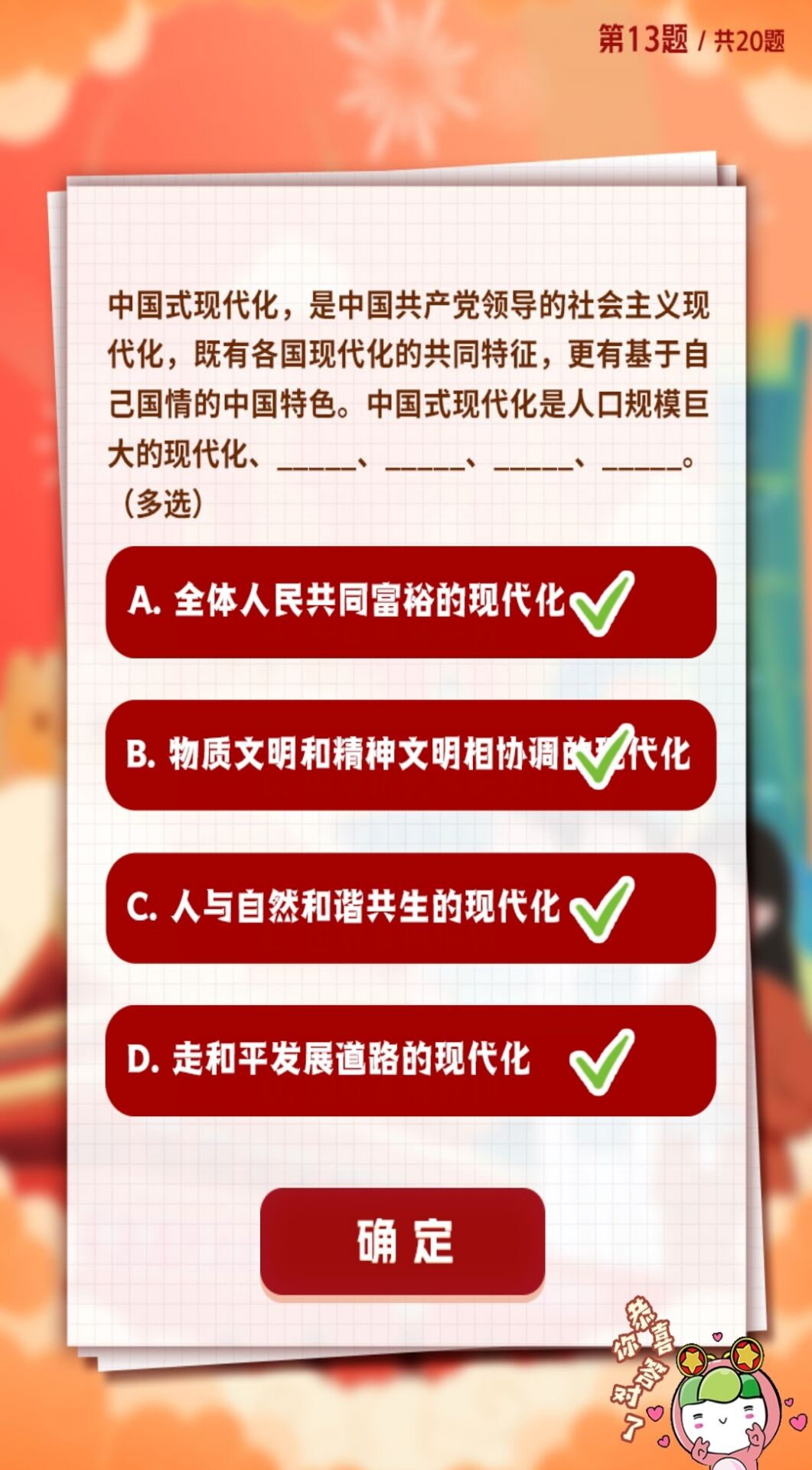 中国式现代化,是中国共产党领导的社会主义现代化,既有各国现代化的共同特征,更有基于自己国情的中国特色。中国式现代化是人口规模巨大的现代化、、、、。(多选)