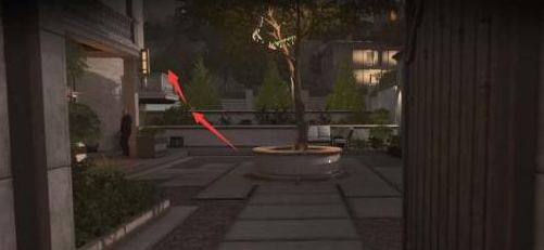 5、经过一楼泳池,院子里有条路可以潜入二楼阳台