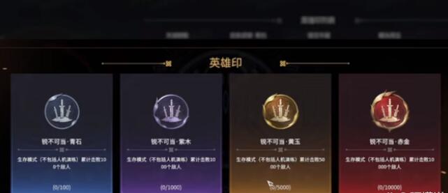 1、通过完成不同的挑战目标可以获得英雄印,并且英雄印会随着进度的不断提升而进阶。