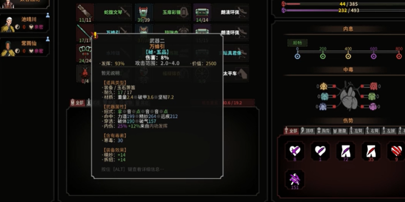 7阶内功,真气攻防3:2加点,无视轻灵和内息(无脑换血)。但铸剑这个时期很尴尬,前期神技鱼肠剑在这个时候显得很疲软,但仍然比7、8阶剑法。原因只有一个,因为它是主外伤的,比起混合的强得多。