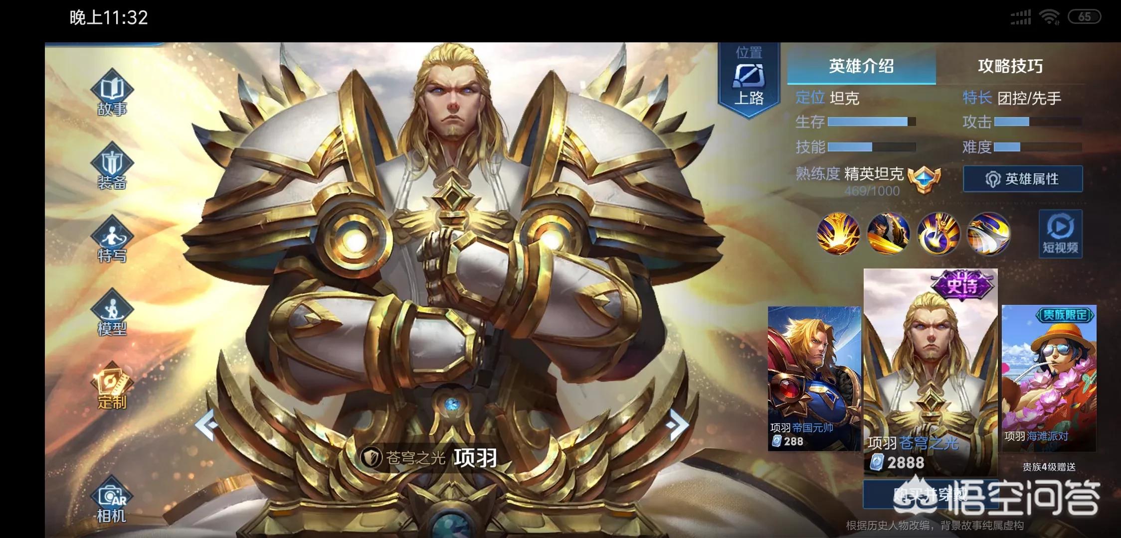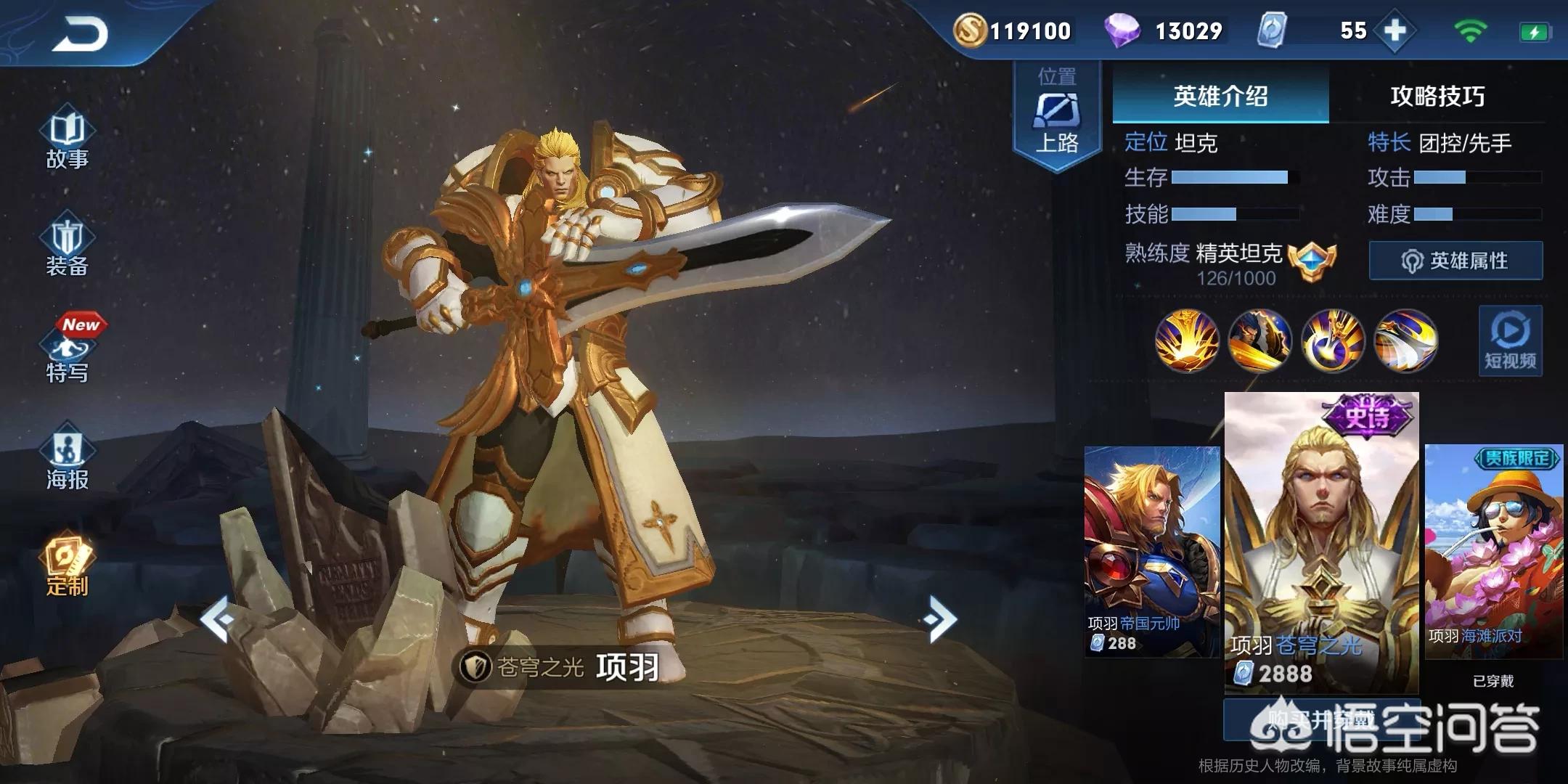 如果没有项羽的这款史诗皮肤,你的皮肤碎片也特别多的话,我比较推荐大家兑换这款苍穹之光,这款皮肤虽然是价值2888点卷的史诗品质皮肤,价格特别的贵,根本不符合这么高的价值,但是这款皮肤已经翻新完成,几个技能的特效全部做了改版,可以说特别的炫酷,而且还增加了新的皮肤回城特效,还是很值得兑换的。