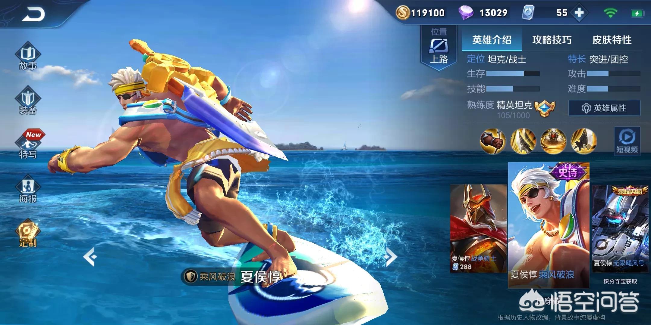 第三个我要推荐大家兑换的皮肤,就是夏侯惇的乘风破浪,如果没有钱购买夏侯惇的无限飓风号的话,那么这款皮肤还是很值得兑换的,而且夏侯惇这个英雄也是特别的好玩,手感特别的好,特效也很不错,我是比较推荐大家兑换这款皮肤。