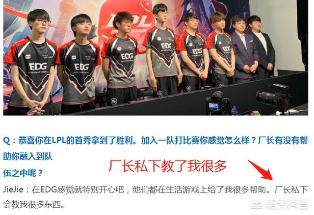 在全队采访的时候,jiejie也表示在EDG非常的开心,他们在生活上给了我很多帮助,厂长私下教会他许多东西。