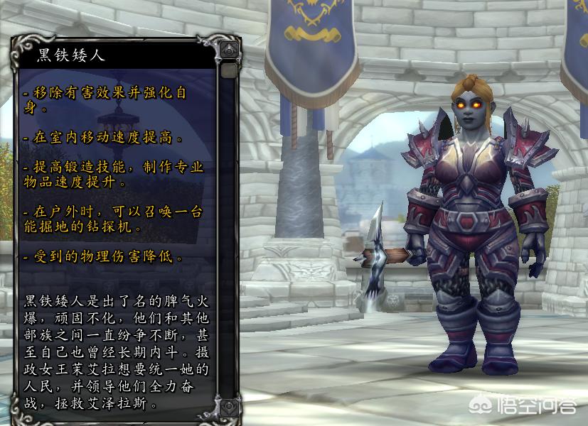 PVE方面,如果是防战的话,比较推荐黑铁矮人,单从种族天赋来看,几乎是为防战量身打造的,烈焰之血的效果和降低物理伤害在坦克职业身上也可以达到最大化的收益。
