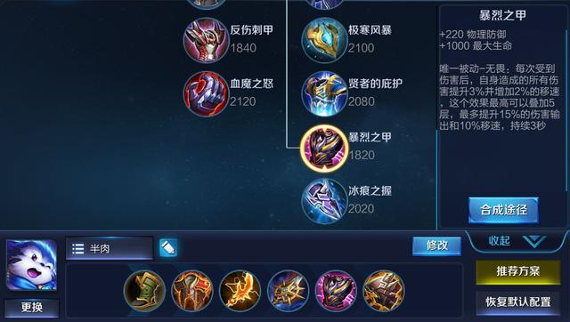 5、暴烈之甲:受到伤害增加移速和伤害,适合梦奇!