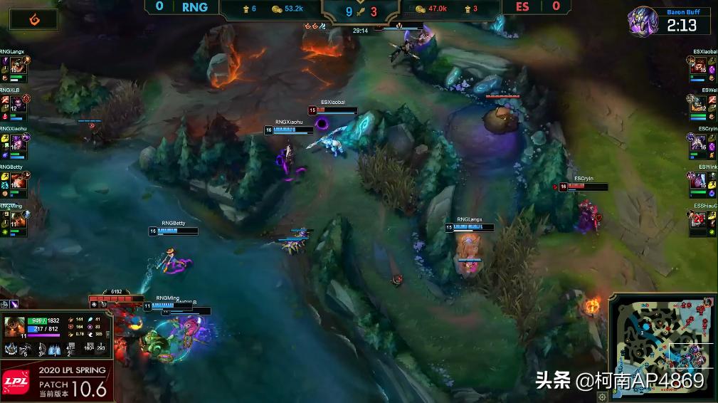而今天RNG对阵ES战队的对局中,ES没有能够延续自己在赛季之初的强悍风格,反而在输给VG之后,就像突然被人给研究透了一般,遇到RNG的两局比赛也格外的“头铁”,在没有拿到锤石盲僧的时候,头铁选择卡萨丁这个英雄,连续两局,结果在前期的时候直接失去的比赛的节奏能力,一直被RNG战队牵制鼻子走,卡萨丁两局都没有到达16级,在装备和等级还没有起来的时候,就直接被一波了比赛!