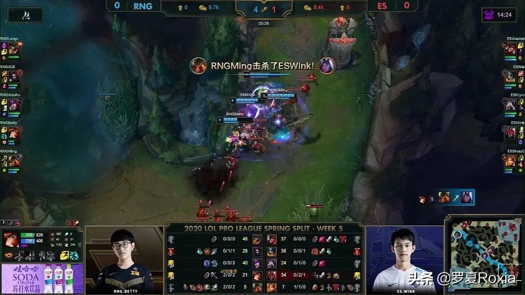 一般是联赛领头羊,一边是跌跌撞撞的RNG,本来大家以为RNG可能悬了,谁成想RNG以一个2:0结束了这场比赛。在赛前其实uzi对于这场比赛有一番话,现在看来堪称神预言,uzi表示“我觉得RNG打ES是有一点优势的,因为wink比较怕小明”,最终结果也是RNG轻取ES。