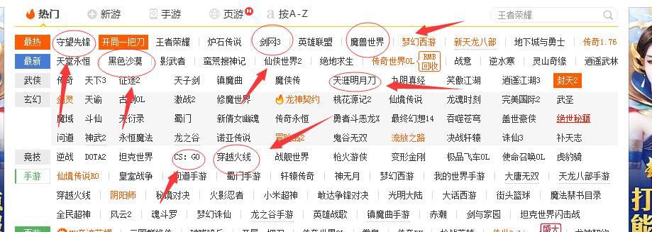 图上标识出来的都还算是人多,3D战斗的网游,基本没有问题,如果一款游戏比较火,是不可能不收录的,当然图里最热的那个啥开局一把刀的游戏,你们就当看个笑话吧。