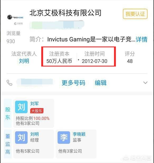 从公开资料中,我们可以查到IG战队的所属公司叫“北极艾极科技有限公司”,股东刘军100%持股,注册时间是2012年7月30日。这些资料都是公开的可以随意查询,大家看到这里肯定会很奇怪,IG的老板不是王思聪吗?为什么是刘军持股?这就涉及到代为持股,合法规避风险的问题了,这里咱们不多说。那么又有小伙伴们要问了,为什么公司的注册资本只有区区50万元呢?这就涉及到许多方面了,囧王者慢慢来分析: