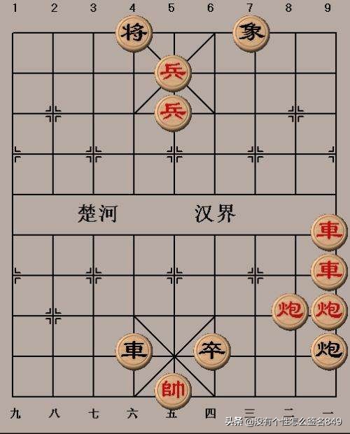 比如:单车兵对单车,是例胜,即使走成下图变成了老兵,也可以用老兵收山的定式,依然是例胜。但如果换成黑方的车将都完美占据着中路,就成了例和局。