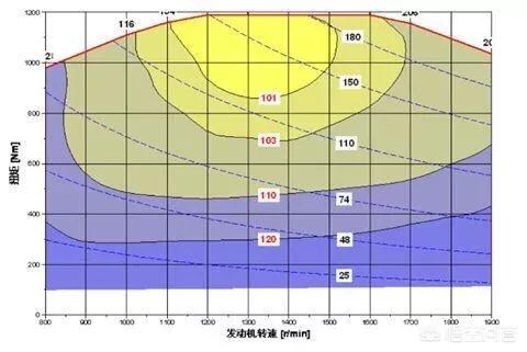 汽车是有一个经济时速,这也是高速上比较省油的原因之一。经济时速是指发动机工作转速在一个最省油的工况,家用车一般在汽车80到100公里每小时的时速。当然不同车型不一样,各厂家的标定有区别。如上图发动机的万有特性图,在中间转速区间发动机才会有最高效率,从而反映到车速上。