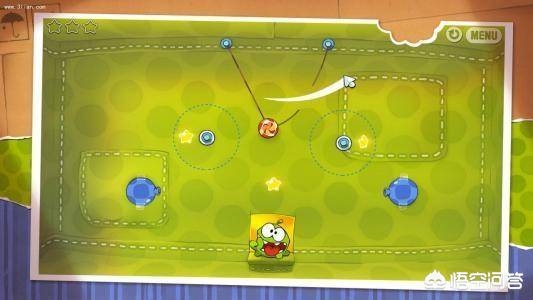 《割绳子》(Cut the Rope)是一款Zeptolab开发的益智游戏。刚在app store上市不到一个月,就将冠军《愤怒的小鸟》(Angry Birds)拉下黑马宝座。游戏采用了经典的2D界面,可爱的怪兽主角,绚丽的画面,闪闪发光的星星、逼真形象的肥皂泡泡受到玩家的一致好评。游戏主要玩法就是在物理引擎的作用下,选择适宜的时刻用手滑动屏幕,割断绳子,让糖果在机关的作用下最终掉入小怪兽嘴里。糖果通过碰到星星来作为收集要素,这使得游戏更具有策略性,让不少玩家开始动脑思考最优解。