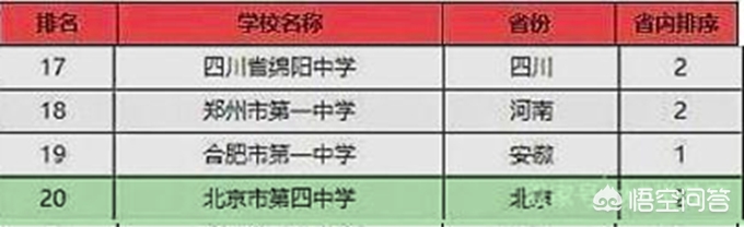 在中国名校长论坛和教育媒体联合推出的中国百强中学排行榜中,北京四中排名全国第20位,是全国知名中学,有一定影响力的中学。