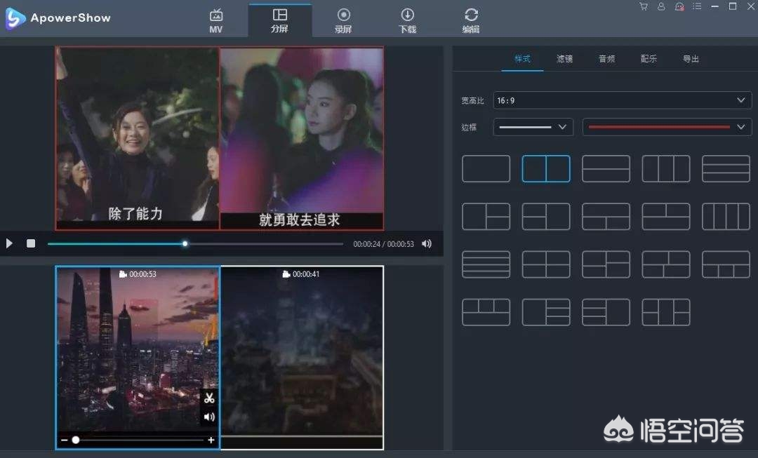 一款在线的照片视频制作工具,提供各种主题模板;提供了各种样式的分屏功能,滤镜特效;功能比较全面