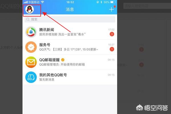 1、打开手机QQ软件,点击屏幕左上方的个人头像。