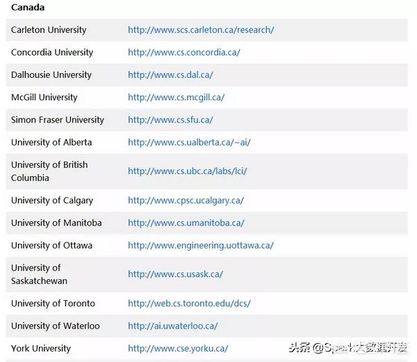 今天给大家推荐一份资料,里面罗列了全球各地的人工智能学术机构,包括学校学院,学术机构等,可以根据这份资料对国外的人工智能专业了解个大概,下面是部分机构的截图,完整列表:世界各地的人工智能AI学术机构