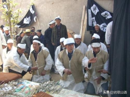 人死后孝子脚穿分男左女右的折口孝鞋,披麻戴孝。家族和亲朋都要去悼孝,既然是悼孝就得戴孝,戴孝者还要按亲疏远近发放长短不一的孝布顶在头上,戴孝免灾已成当地共识。