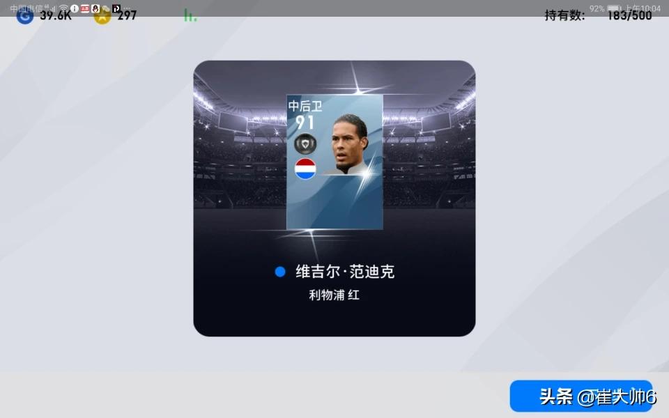 实况足球手游,我就玩这个游戏,在虎牙开直播,目前3个黑输球员能换比自身高3个等级的球员,也就是3个范迪克可以换任何一个球员,实况设置一级等级最高是c罗跟梅西94,范迪克91,内马尔92.就操作性来看,范迪克是当今版本最强中卫,内马尔没有姆巴佩,c罗,梅西好用,3个范迪克换c罗或者梅西更好!