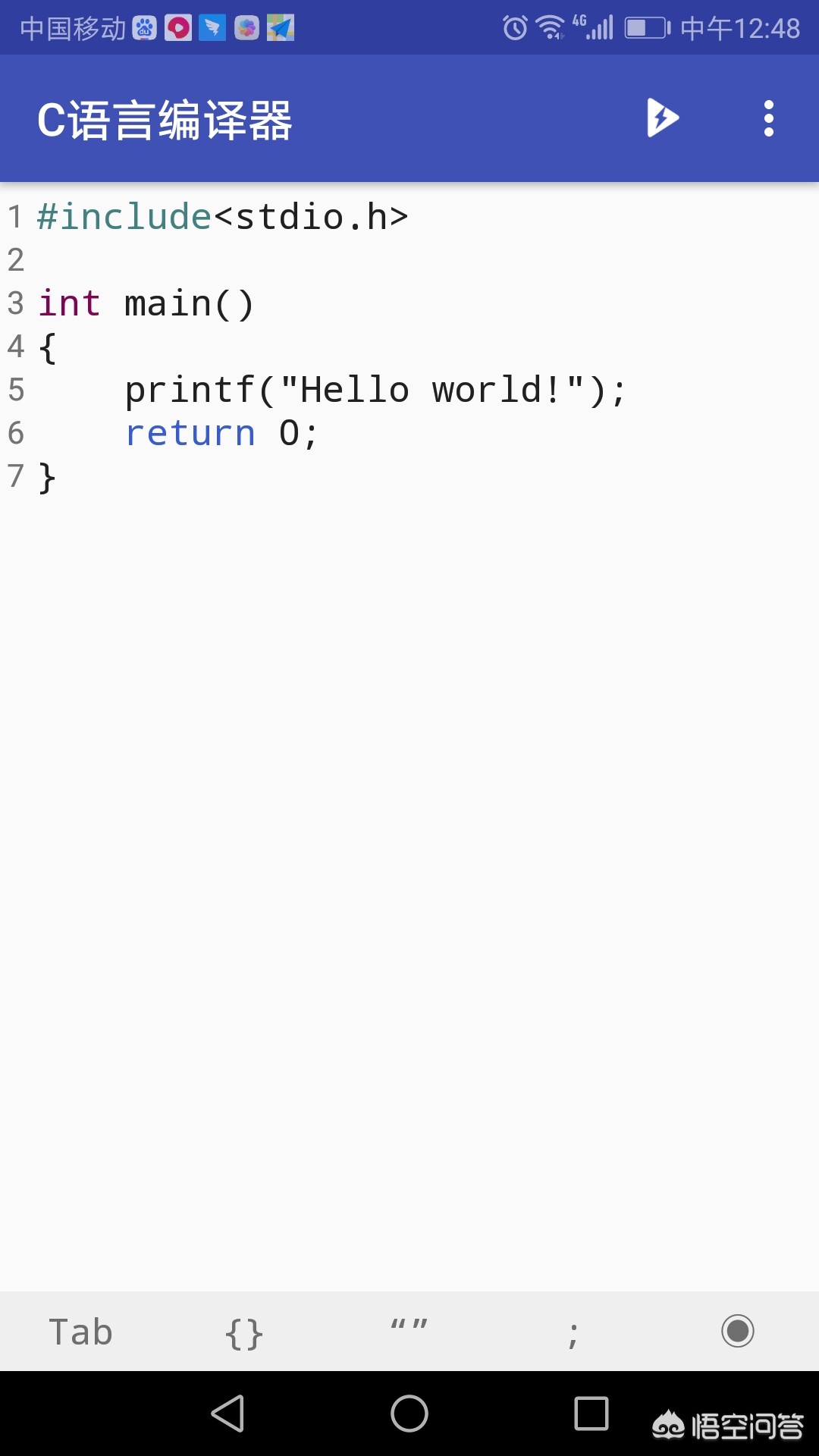 可以啊,在应用商店里输入c语言编译器,搜一下就出来了,安装之后是这样的,然后点右上角的闪电图标就编译了,可以看下面的图,同学,有手机就可以写c了,不过不如电脑写的方便,输入比较慢。还是建议在电脑上写。