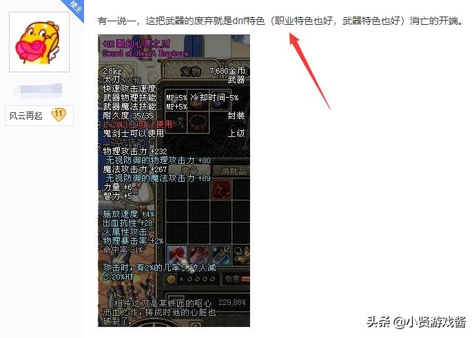 DNF有玩家直言裂创心灵之刃的废弃就是DNF特色消亡的开端,你认为呢