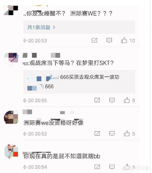 说WE与SKT五五开没问题,但是洲际赛WE自告奋勇做下等马对SKT是什么鬼?就是因为这条回复,引来了网友的一片质疑。