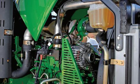 采用6.8升约翰迪尔发动机,储备扭矩达35%。大储备扭矩发动机提高拖拉机在多变的地况下适应负荷变化的能力。PowerCore干式空气滤芯,更换周期是普通空气滤芯的5倍,节省用户使用成本。发动机采用全电控高压共轨燃油系统,提供精确的喷油和雾化效果,提高燃油燃烧效率。