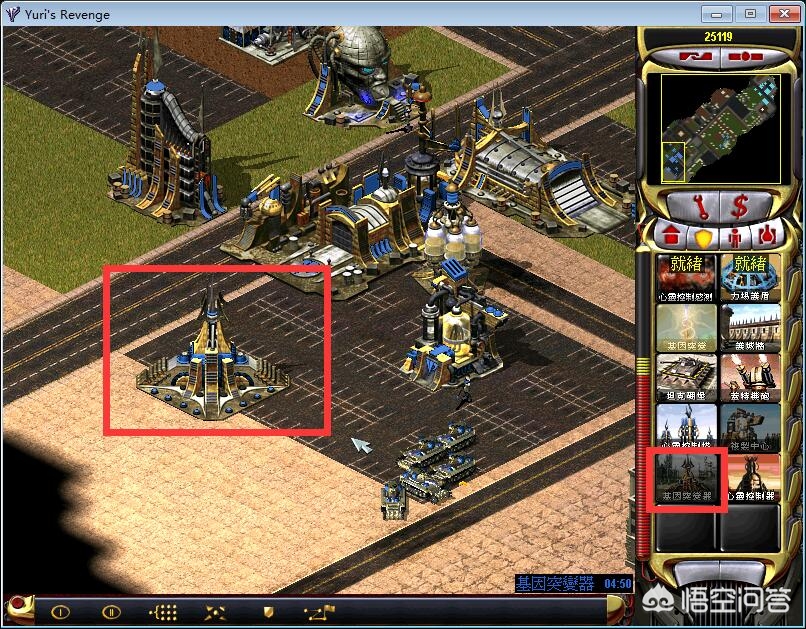 主角就是红框这个基因突变器,尤里阵营里的一阶超级武器。