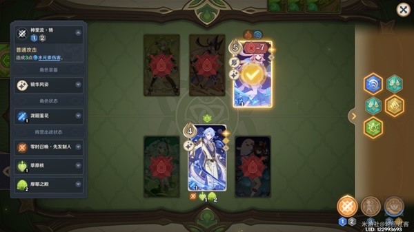我们需要留一下天赋牌,尤其是草神的天赋牌,只用1费的大招不能不用。