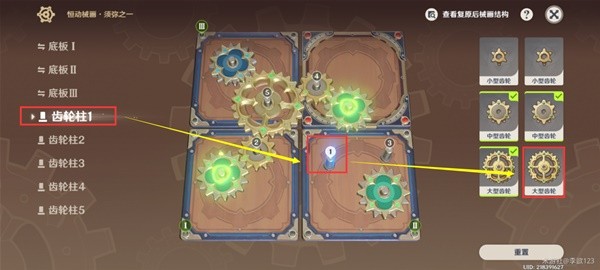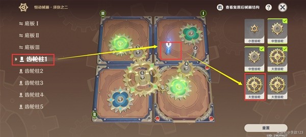 在齿轮柱1放上「大型齿轮」