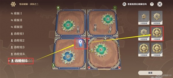 在齿轮柱5放上「大型齿轮」