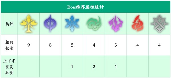 「上下半重复数量」为同层重复数量,如第5层上下半都带冰属性