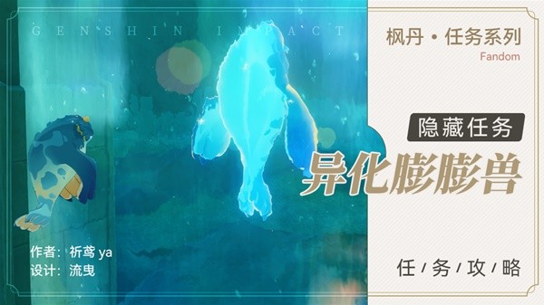 《原神》4.0中的异化膨膨兽是一项隐藏任务,需要玩家帮助被困在海底宫殿的异化膨膨兽,下面请看由“祈鸢ya”带来的《原神》4.0隐藏任务异化膨膨兽攻略,一起来看看吧。