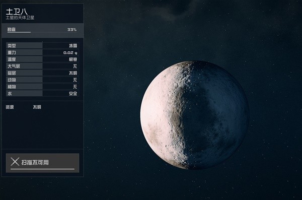 土卫八是相当有特色的一颗卫星,一是阴阳脸(一半反光率贼高,一半反光率贼低),而是有赤道脊,看起来像是个核桃。游戏中土卫八的着色确实是双色的,但没有原本一半半的辨识度,看起来就是颗不起眼的卫星。