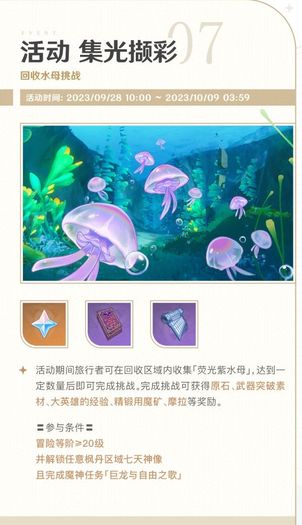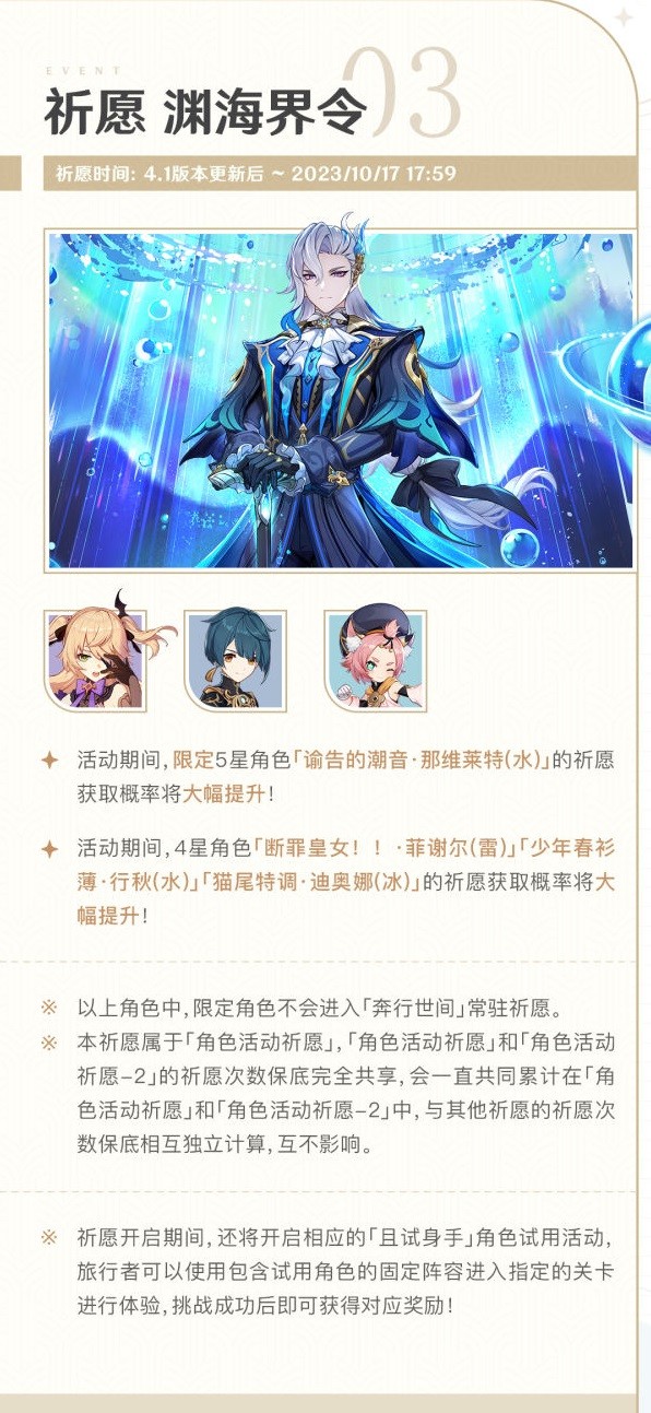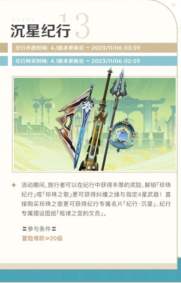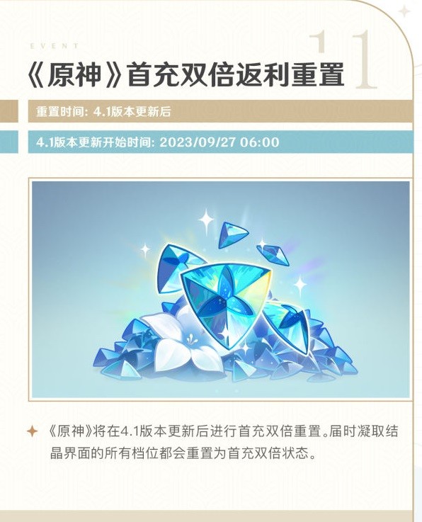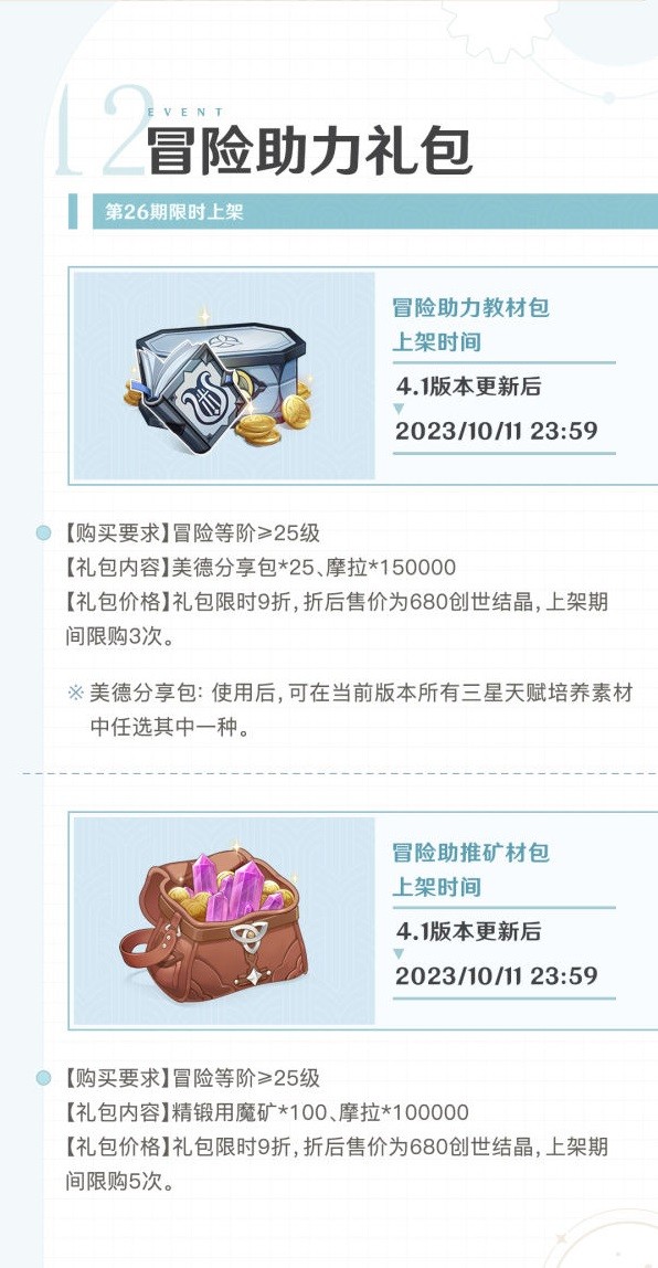 《原神》4.1版本上半活动一览 2023-09-27 10:00:14 大中小 《原神》4,1版本即将更新,不少玩家想要了解4.1上半的活动内容,下面请看官方带来的《原神》4.1版本上半活动一览,希望能够帮助大家。 全文查看