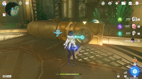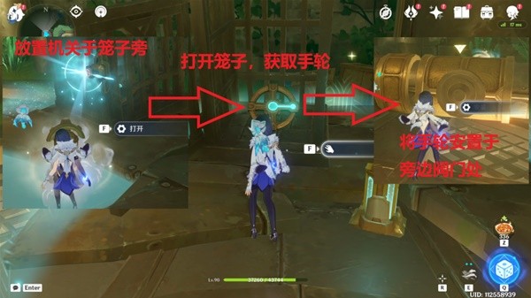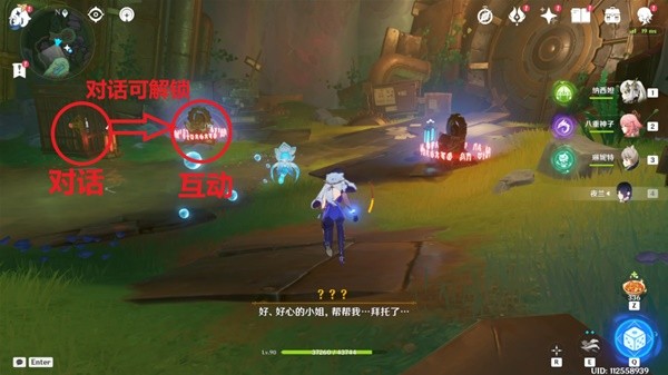 此处需要解救“奎瑟尔”,与笼子里的奎瑟尔对话,对完话就可解锁一旁的“迁能终端”机关