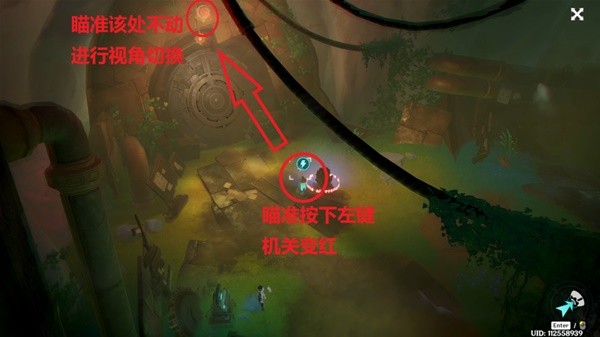 将刚才放置的蓝色机关拾取,放置于红色机关处,与机关互动开启风场