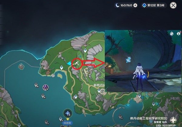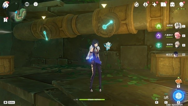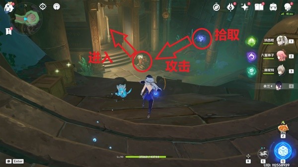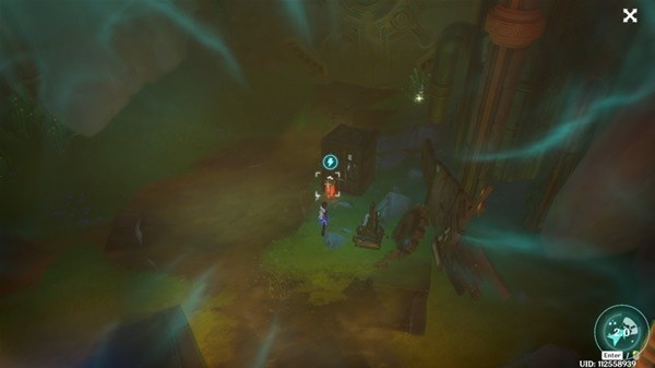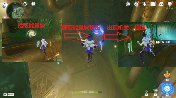 下到底部,此处可以找到芒性能量块,拾取后攻击能量柱,出现蓝色机关,点击拾取